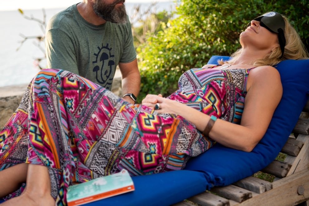 A: Your retreat involves approximately 20 hours of therapeutic work balanced with rest and integration. You’ll participate in three psilocybin sessions (Days 2, 4, and 6), each lasting 4-6 hours in your own private space with dedicated support. These are internal, introspective experiences—you may encounter emotions, insights, bodily sensations, memories, or symbolic imagery. Integration days follow each session with 4-hour group discussions. You’ll also have downtime for swimming, beach walks, massage, journaling, or resting. Most guests form deep bonds with their retreat group and experience profound shifts in perspective.