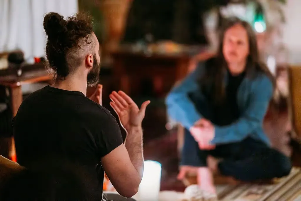 Setting & Atmosphere: Participants are seated on comfortable pads with two professional facilitators present; ceremonies take place in a controlled, supportive container at the retreat center.