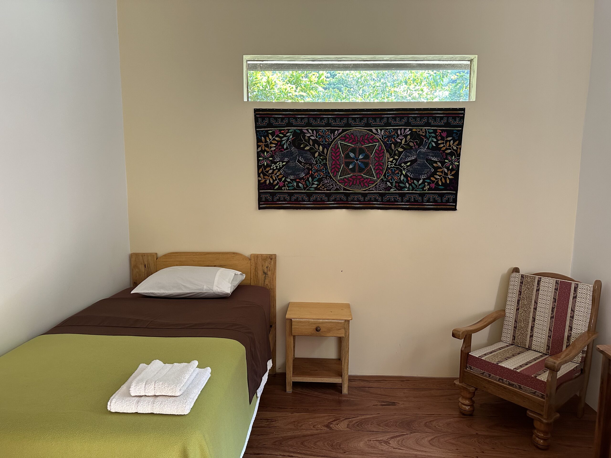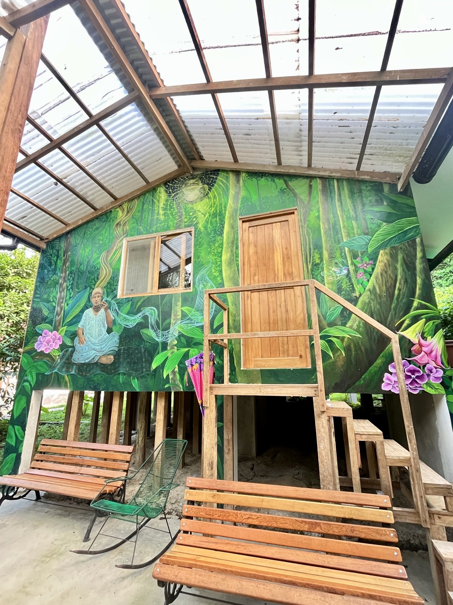 A: Morning/pre-ceremony yoga, jungle walks, visiting master plants, 850+ book library, chiloka (communal space with instruments, puzzles, chess), journaling, hammock time, creek exploration, meditation, creative arts.