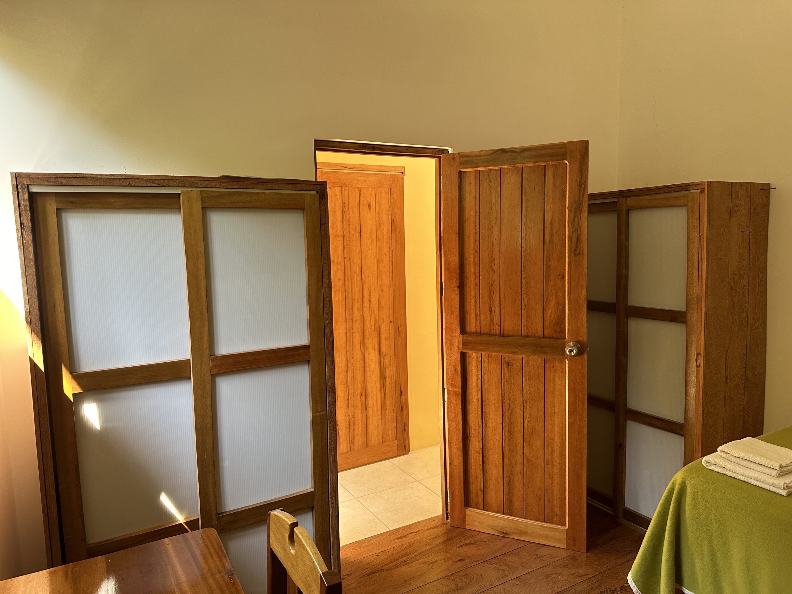 - 💧 Daily Flower Bath Area: Dedicated space with Shipibo vision mural