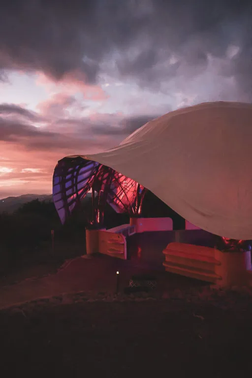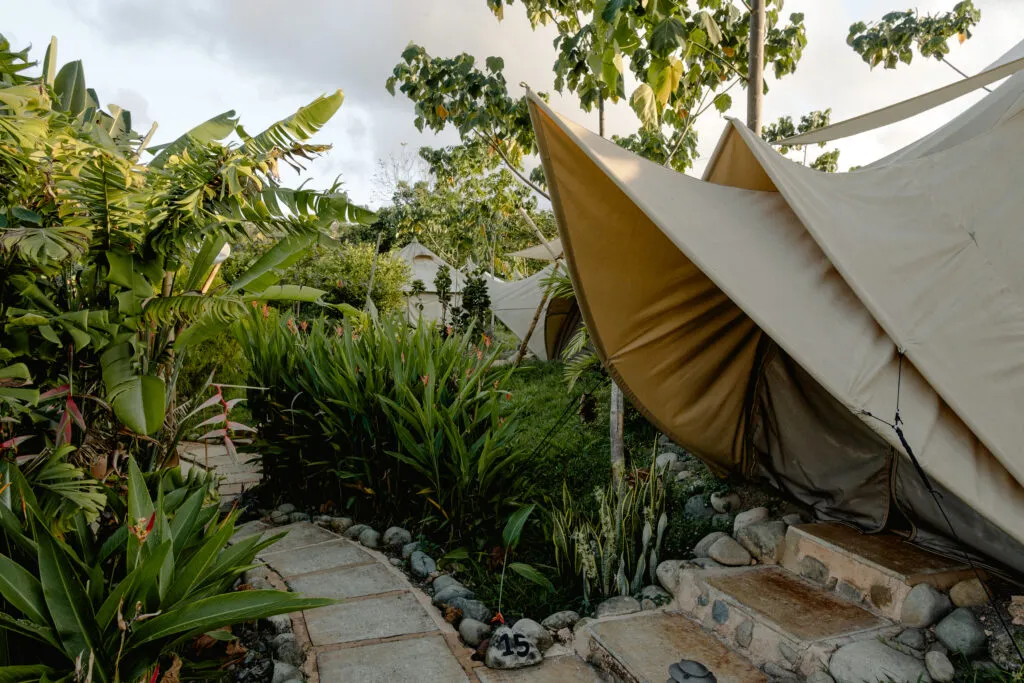A 200-acre mountain rainforest retreat in the sacred Diamante Valley, surrounded by six waterfalls. Luxury glamping accommodations with naturally cool mountain breezes. Rates range from $3,650–$4,950 depending on privacy level and retreat length.
